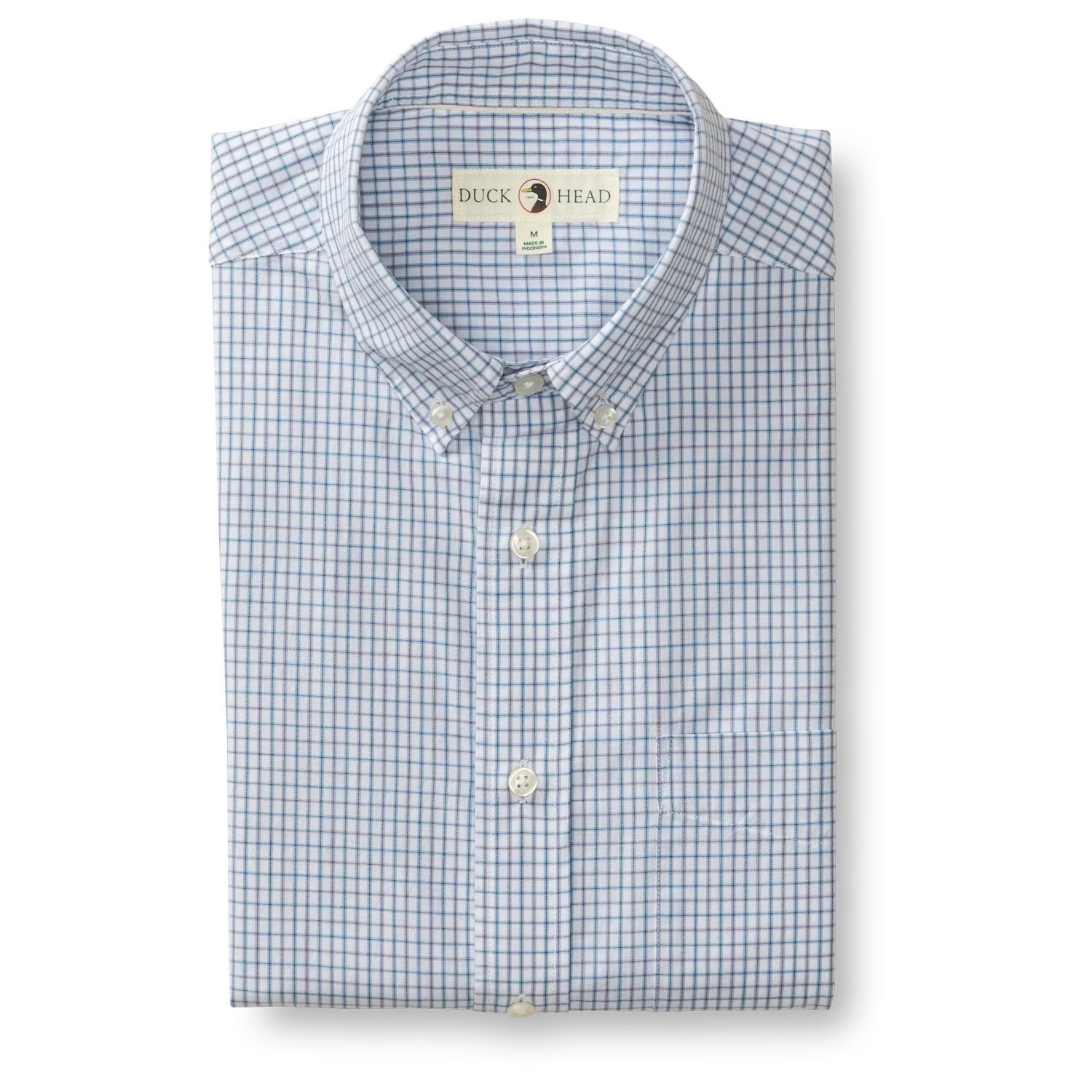 Duck Head Cotton Cashmere Poplin Sport Shirt Lewis Plaid - Glacier Blue