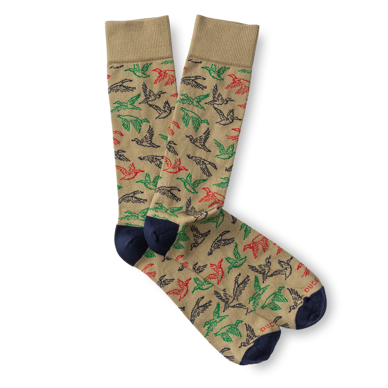 Designed for the social sportsman, these dress socks feature a unique flying mallard motif that adds a touch of the outdoors to your wardrobe. Crafted in the USA, they offer the perfect balance of comfort and durability, making them ideal for both everyday wear and semi-formal occasions.