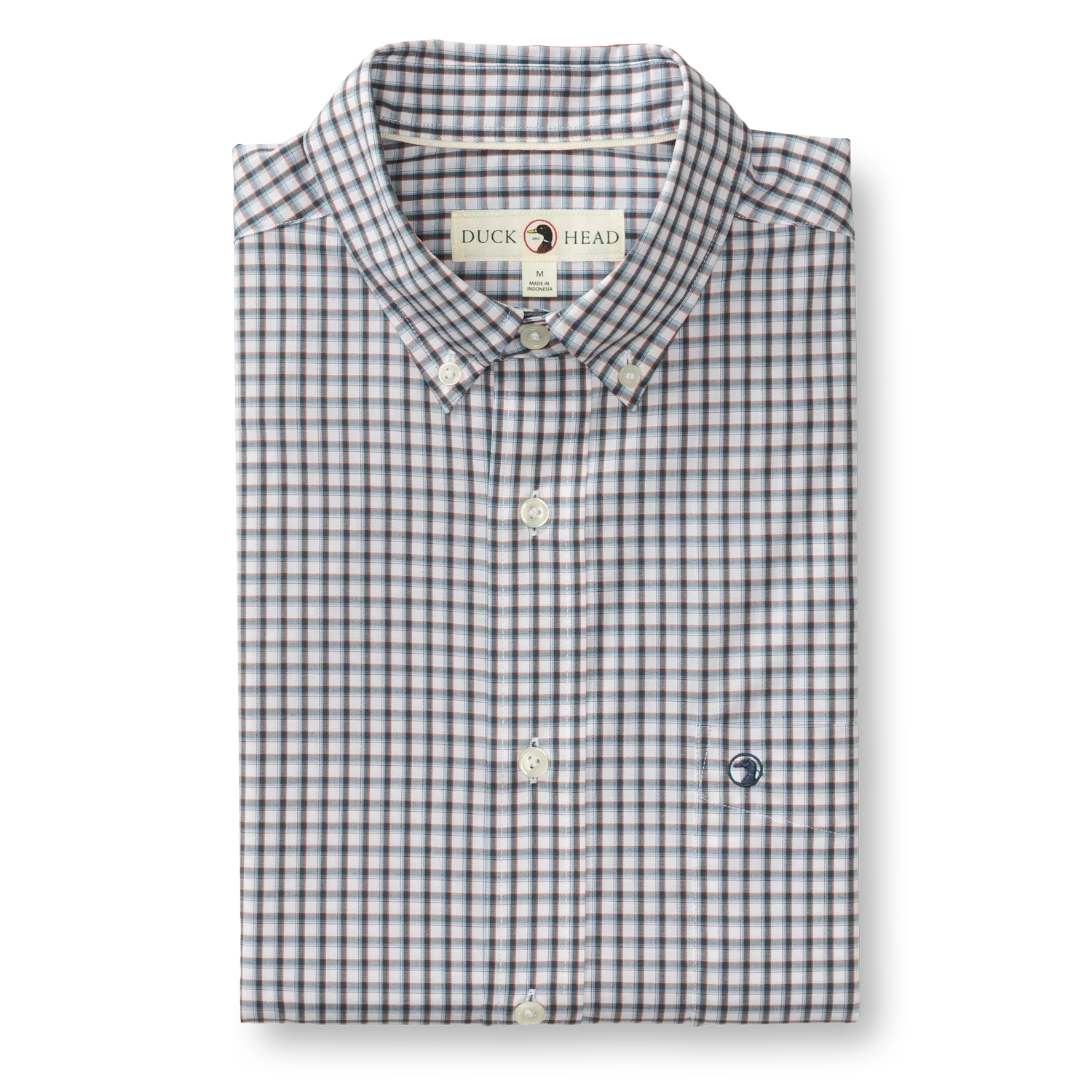 Duck Head Performance Poplin Sport Shirt Bryant Plaid Orion Blue