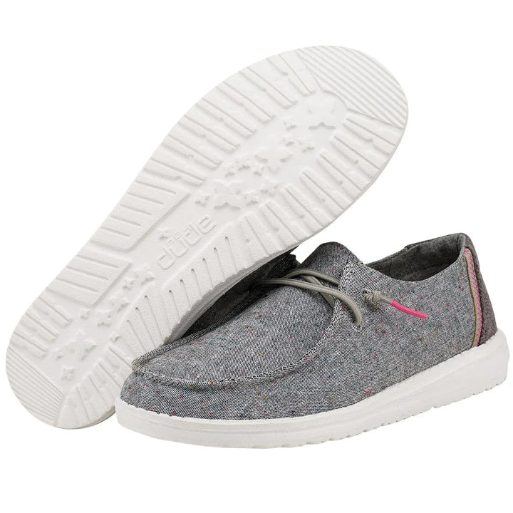 The Wendy collection introduces our iconic low-top moc. A soft, breathable chabray-blend canvas in an easy, breezy summer color and lined in fun prints for extra style points when you kick them off. Featuring an easy-on system with cotton laces and an ultralight outsole for all-day comfort.