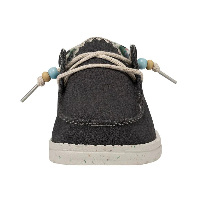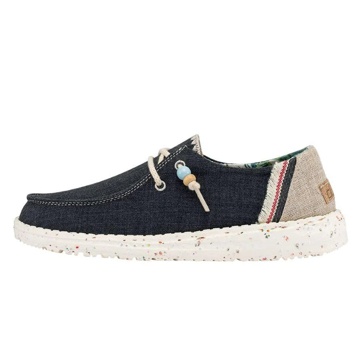 The iconic low-top moc, this time in a soft, breathable cotton-blend canvas. With hand-stitched and fringe details that take any outfit to the next level, that's the Wendy Fringe collection. Featuring our easy-on system with cotton laces and added details like real wood and ceramic beads and finished off on an ultralight outsole. In breezy summer neutrals and a jungle-print lining for extra style points when you kick them off.